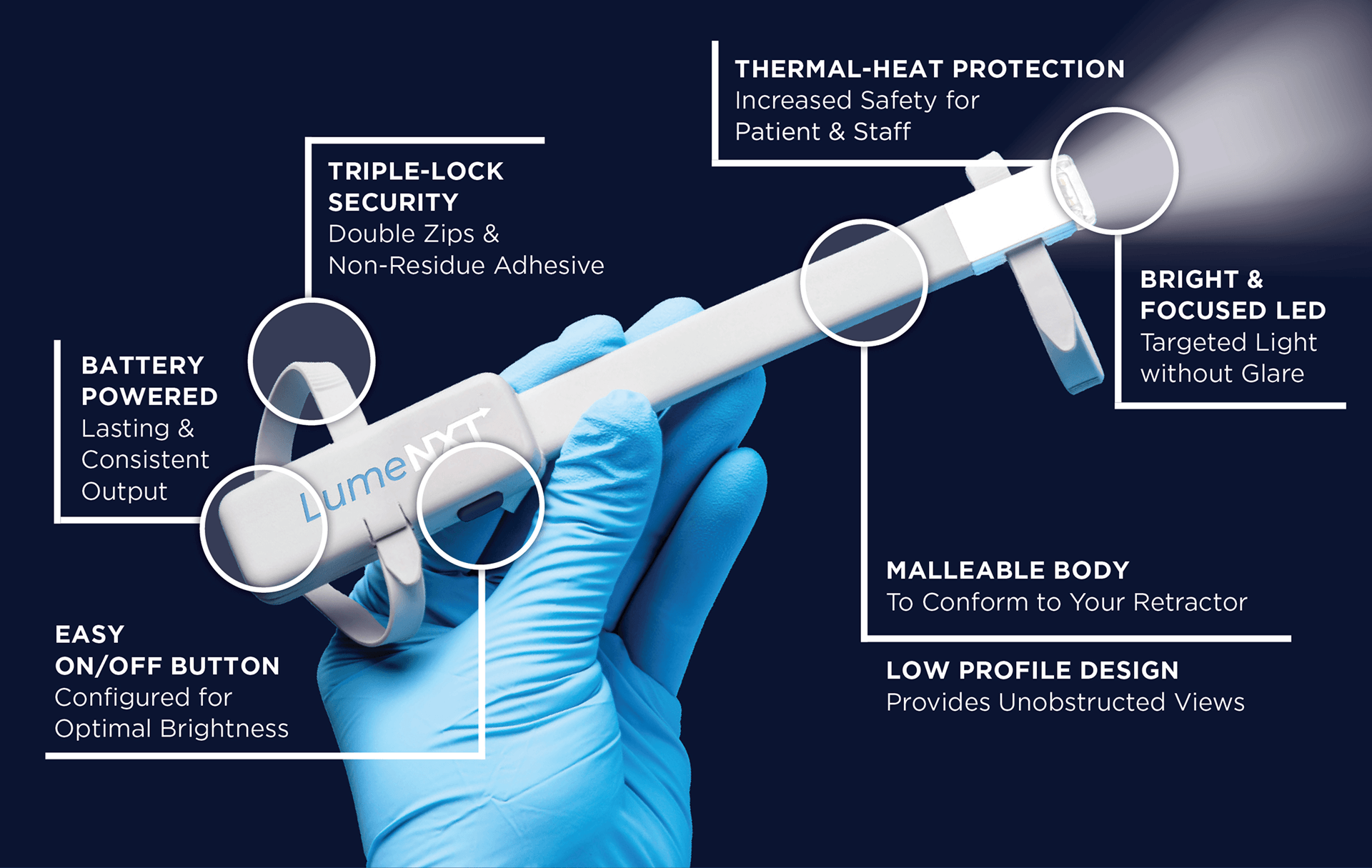 LumeNXT is redefining surgical lighting with advanced technology that blends superior performance with cost effectiveness. We collaborate closely with physicians and medical professionals to design products that meet the unique challenges of modern surgery – exceptional visualization, ease of use / implementation, and value-added economics. Our mission is simple: to help surgeons perform at their best.